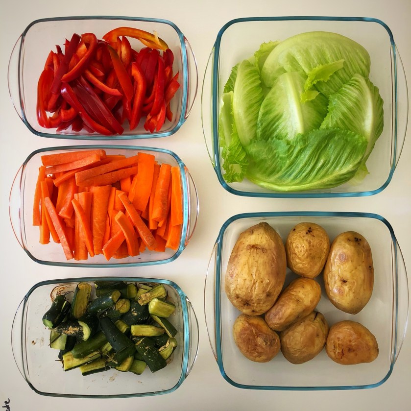 This got me thinking about what she was doing. Now, because of my husband’s health issues, we can’t take the trips we might have once done, but I could still prep things in advance. Only instead of just generally packing the cut veggies in larger containers, I could pack them in smaller ones that would hold just the amount needed for specific recipes. Hmmmmmmmmm!