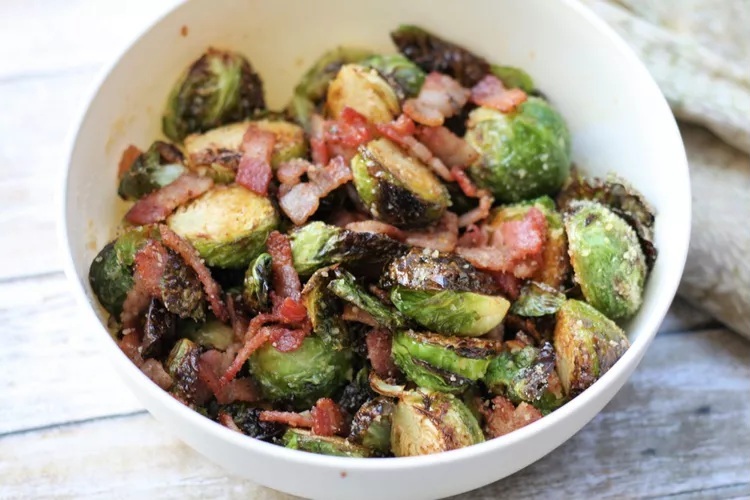 The perfect side dish during the Holidays (or any time for that matter!) all cooked in the air fryer to free up oven space. Make sure you chop the bacon in big enough pieces so it doesn’t fall through the air fryer basket.